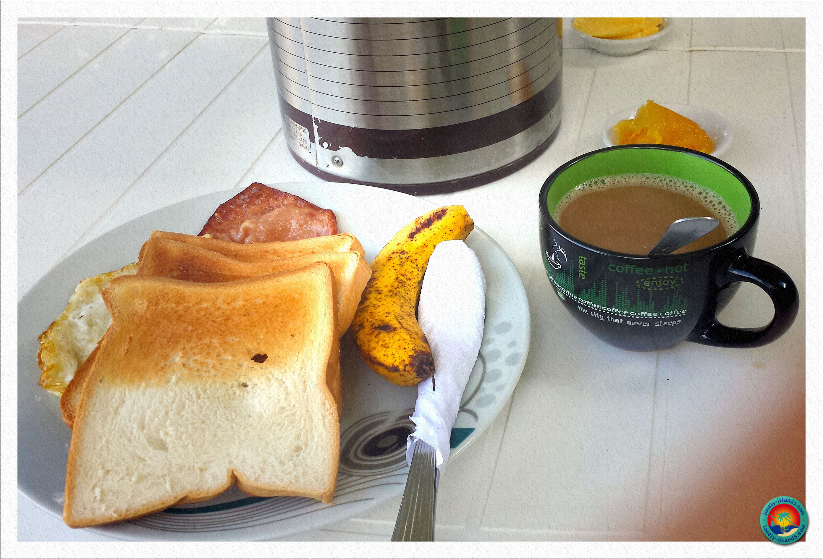Wir landeten gegen halb eins in Puerto Princesa und haben schnell einen günstigen Transfer mit Minivan gefunden und gebucht. Da der Transfer normalerweise nicht mehr wie 5 Stunden dauert und es noch vor eins war, dachte ich wir wären locker vor dem Sonnenuntergang in El Nido. Dann hieß es, wir sollten noch etwas hier warten. Wir hatten auch die Möglichkeit noch etwas zu essen, aber das bräuchte ja noch um fertig serviert zu werden.