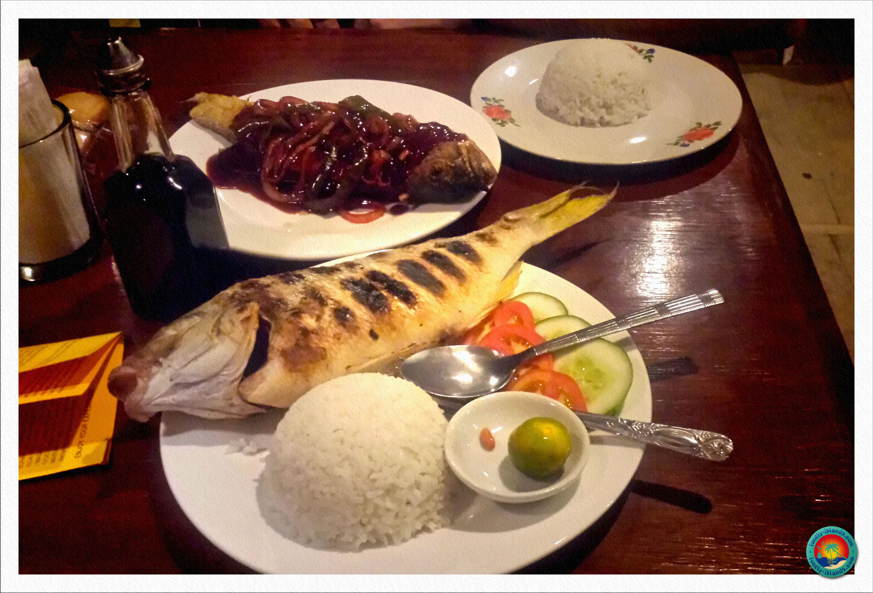 Danach ging es ein Stückchen weiter zur Nachbarinsel Tapiutan Island, wo wir wieder die Möglichkeit zum Schnorcheln in intakten Riffen im klarsten Wasser hatten, oder wir konnten an mehreren Stränden relaxen. Ca. 45 min später gab es auf dem Boot Mittagessen. Typisch philippinisch mit sehr gutem Fisch, viel Reis und frischen tropischen Früchten.