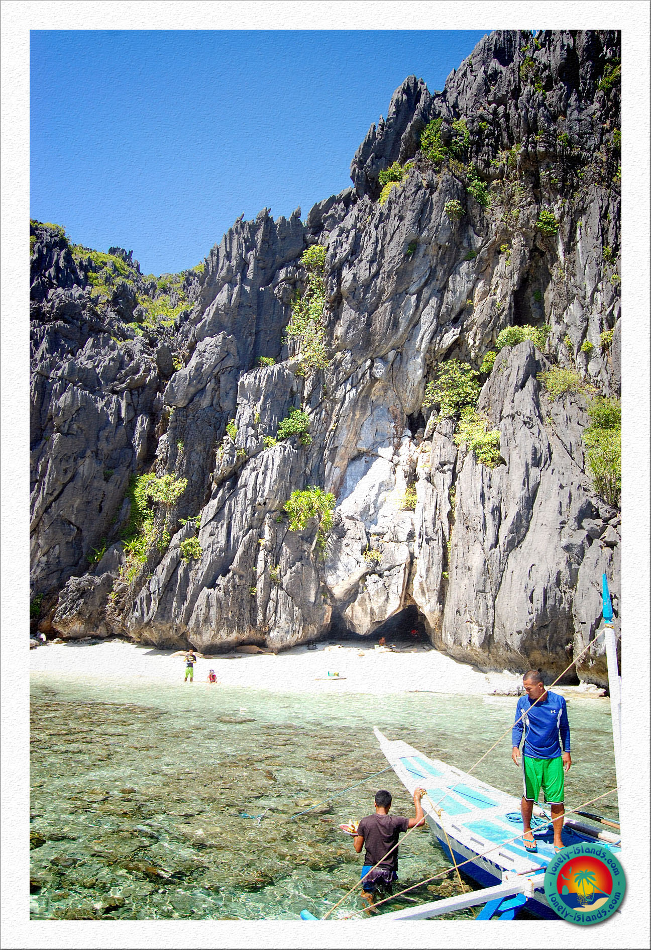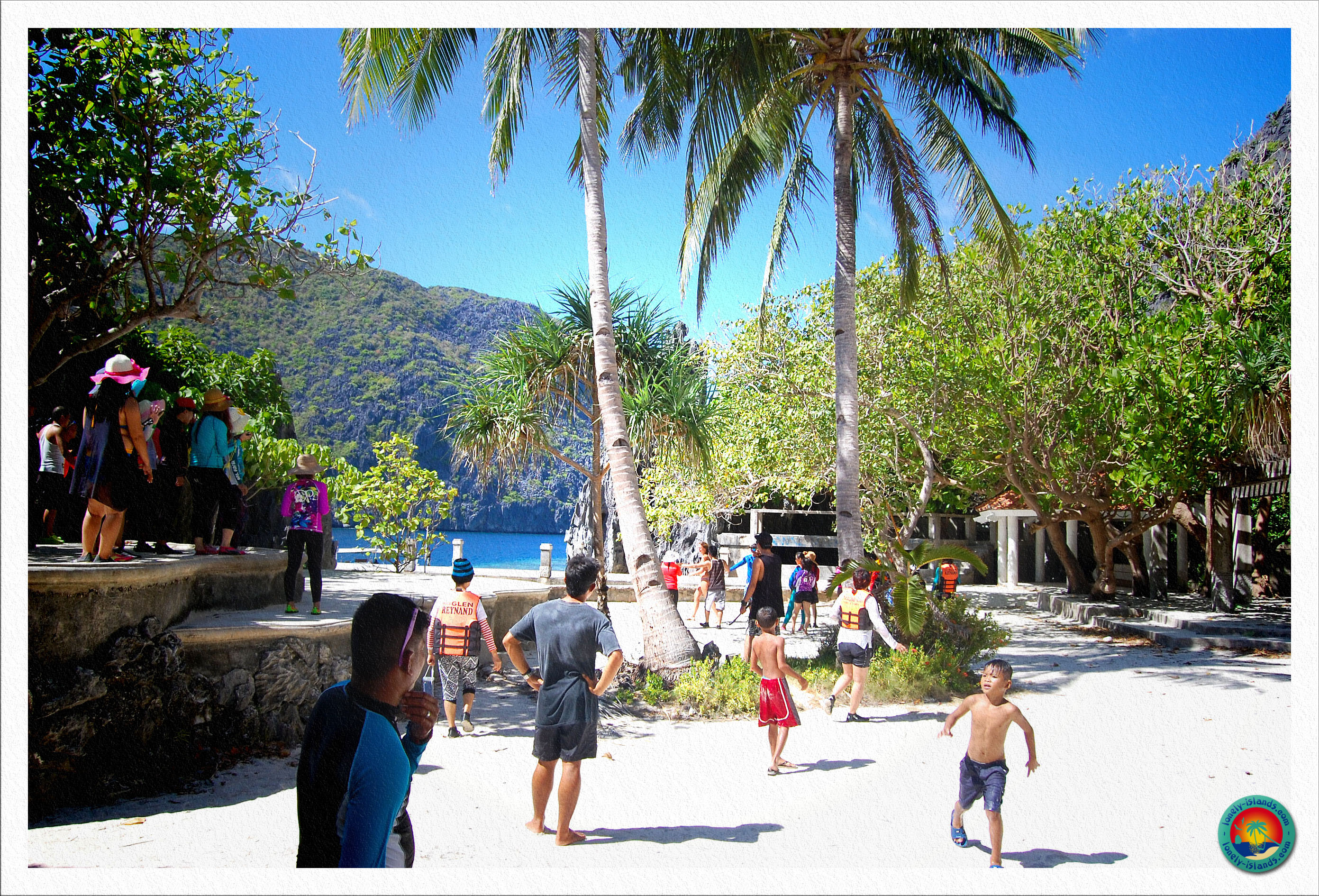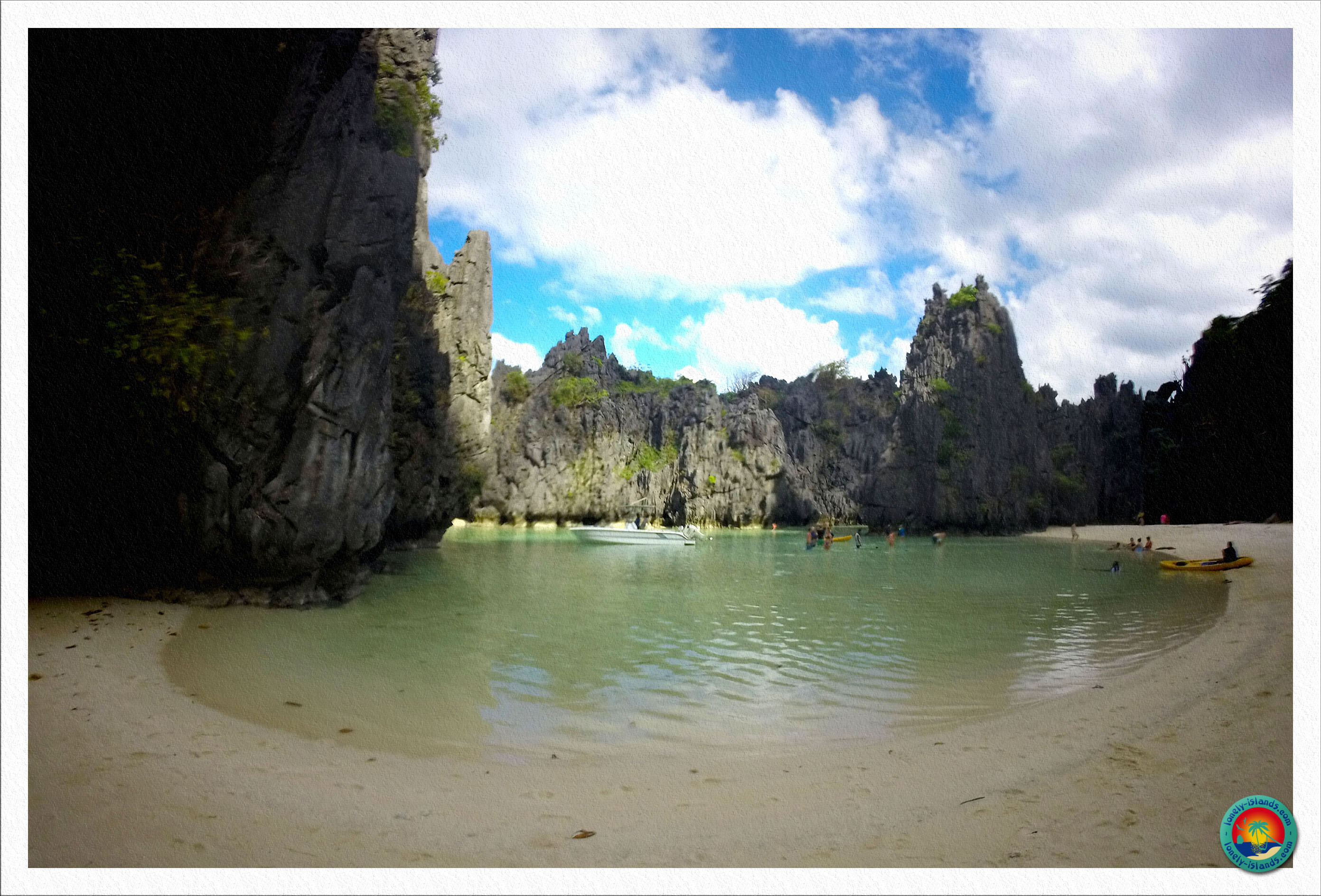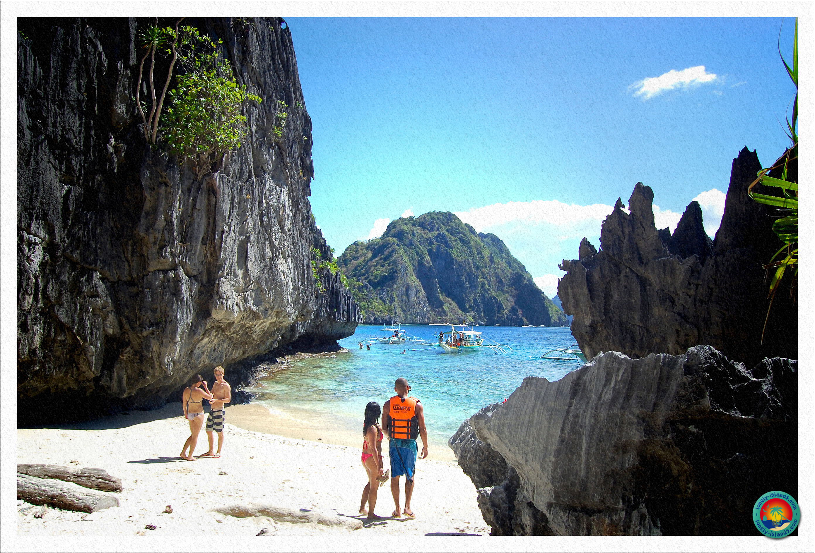 Mit an Board waren 13 weitere Reisende aus aller Welt, aber das Boot war zum Glück recht groß und nicht überfüllt. Im Allgemeinen kann man die Landschaft um El Nido mit der von Koh Phi Phi vergleichen, aber um El Nido gibt es noch mehr blaue Lagunen und Traumstrände und die Felsformationen sind zum Teil noch spektakulärer. Der Tourismus ist hier natürlich auch längst angekommen, aber es gibt soviel zu sehen, dass sich die vielen Boote im Laufe des Tages verteilen.