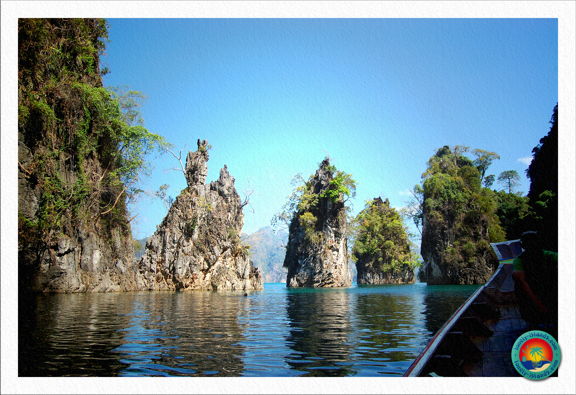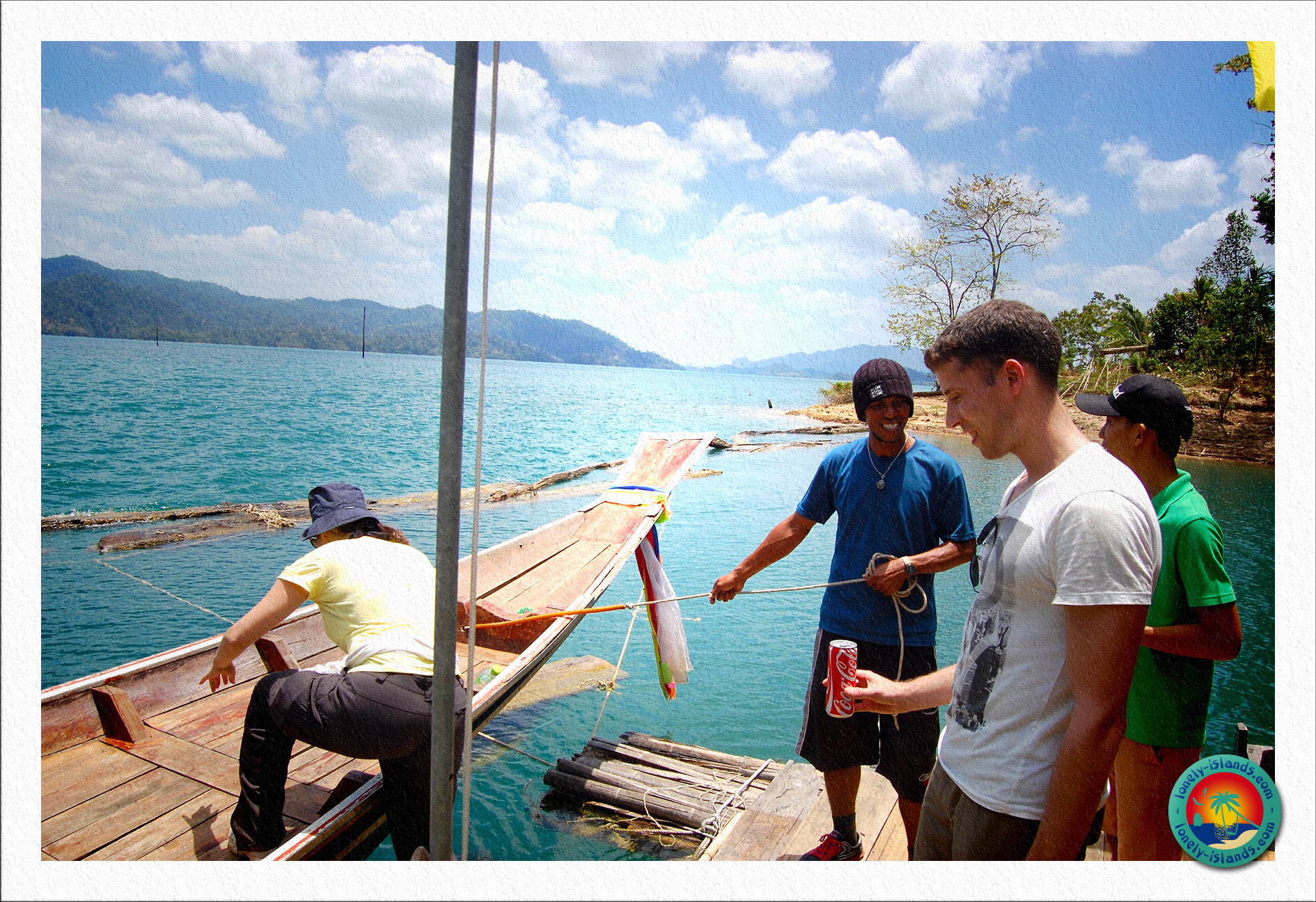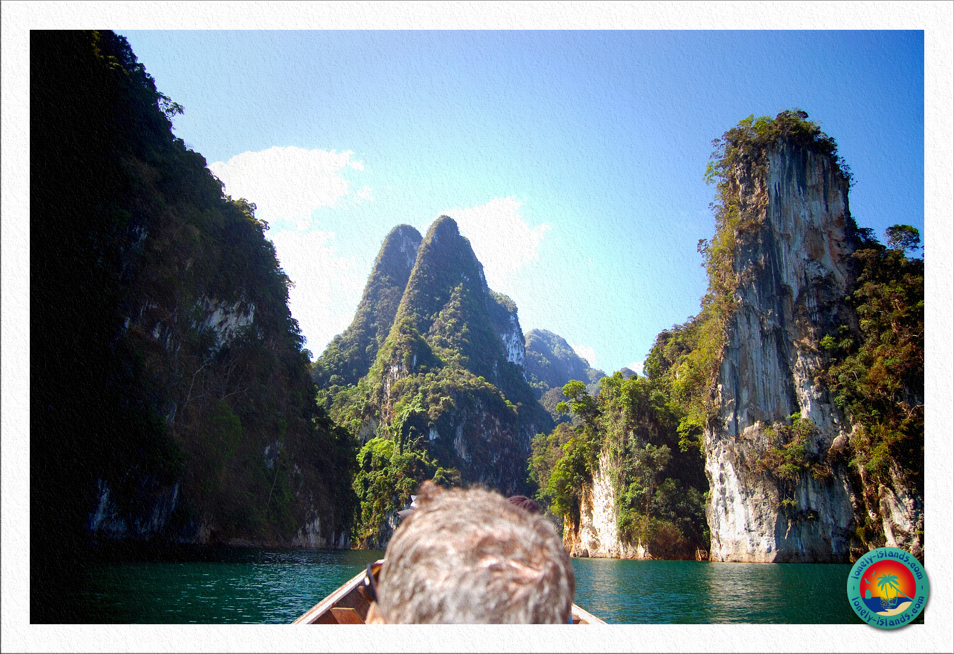 Nach unserer ersten Nacht auf dem Chiao Lan Stausee im Khao Sok Nationalpark ging es nach einem leckeren Thaifrühstück mit dem Longtailboot los zum eigentlichen Dschungeltrekking. Mit 2 Guides, dem ungarischen Paar, einem deutschen Paar und 3 Arabern wurden wir bei heißen 32°C über den Chiao Lan See, nahe an bizarren Felsformationen vorbei, gefahren.