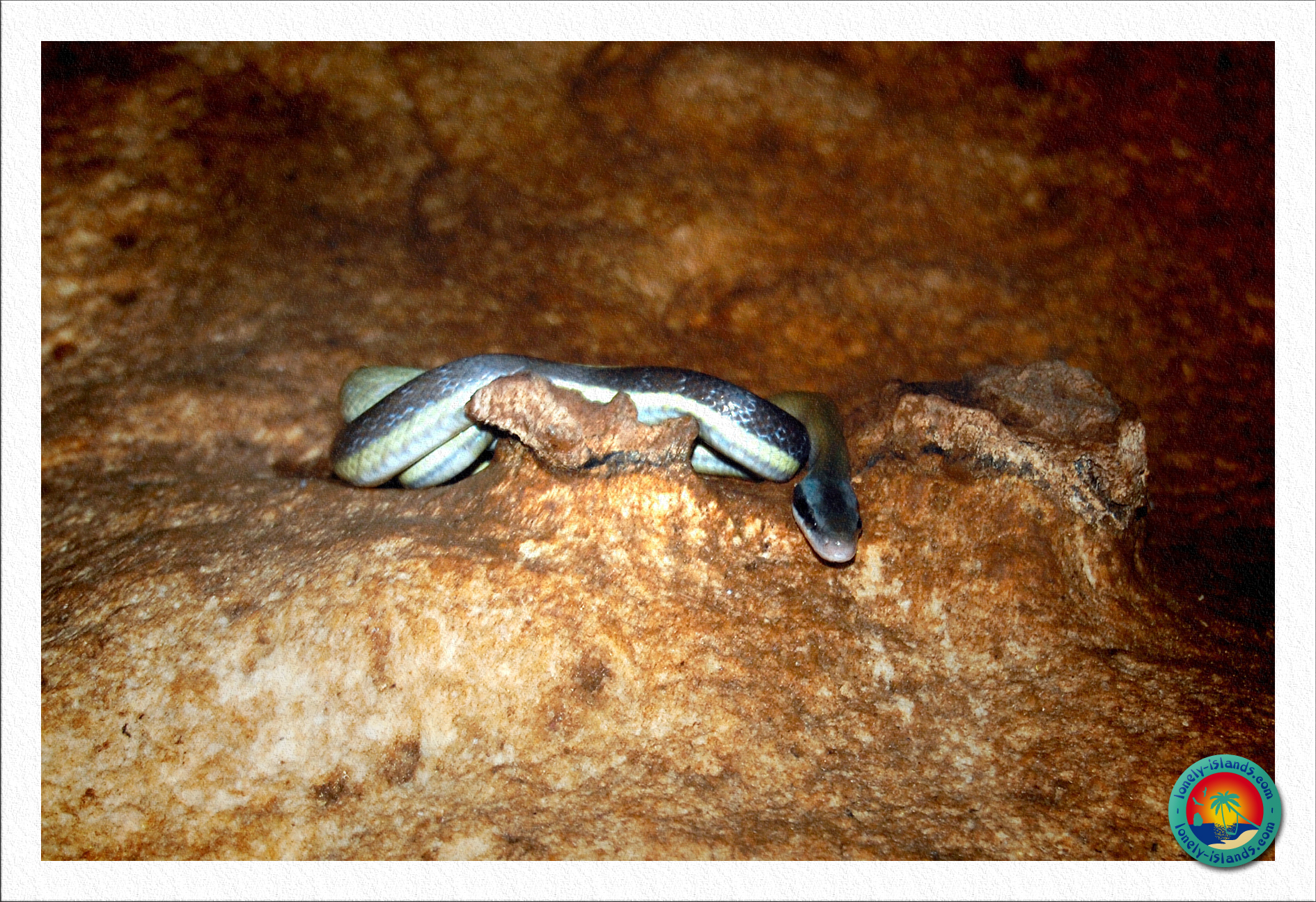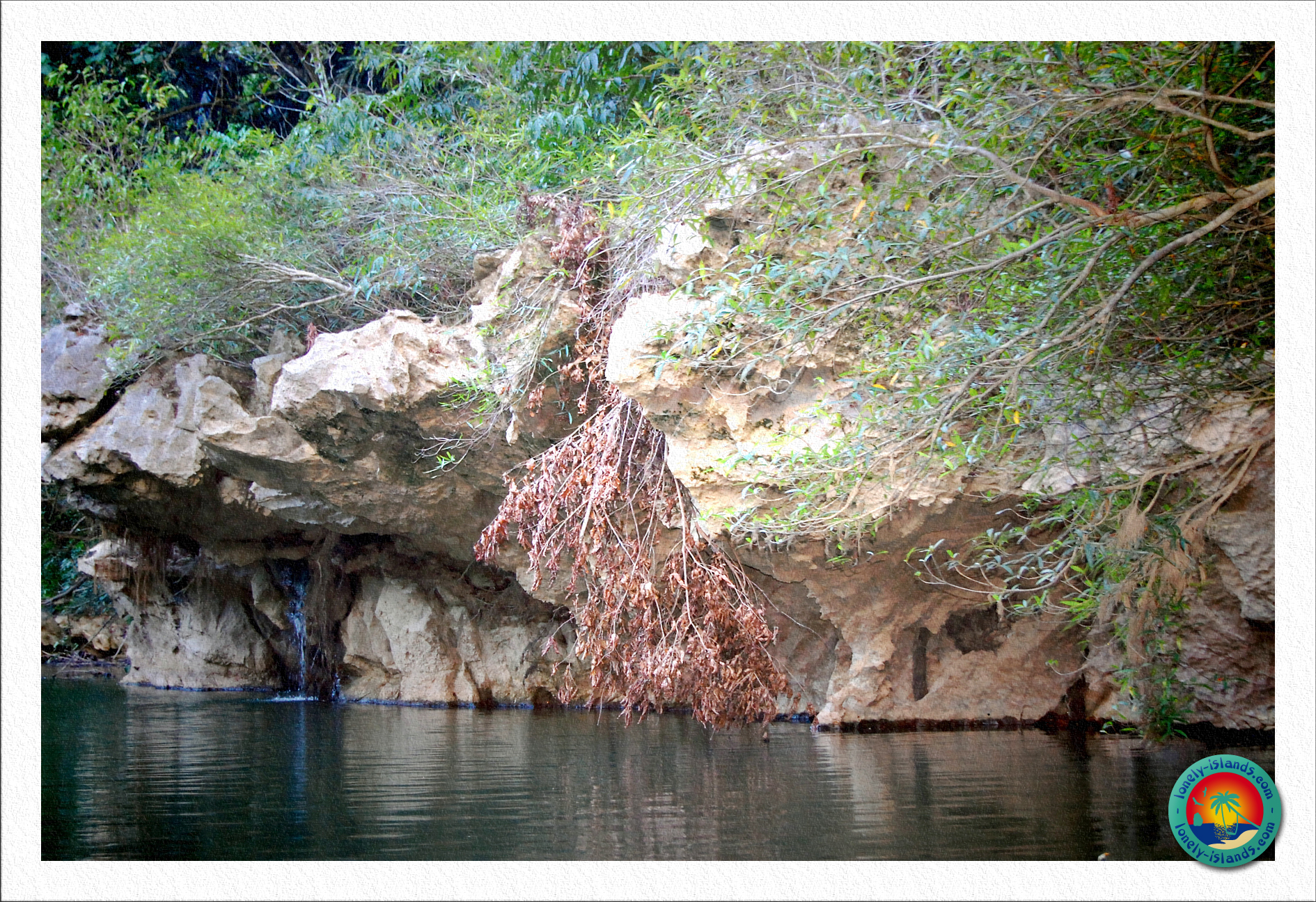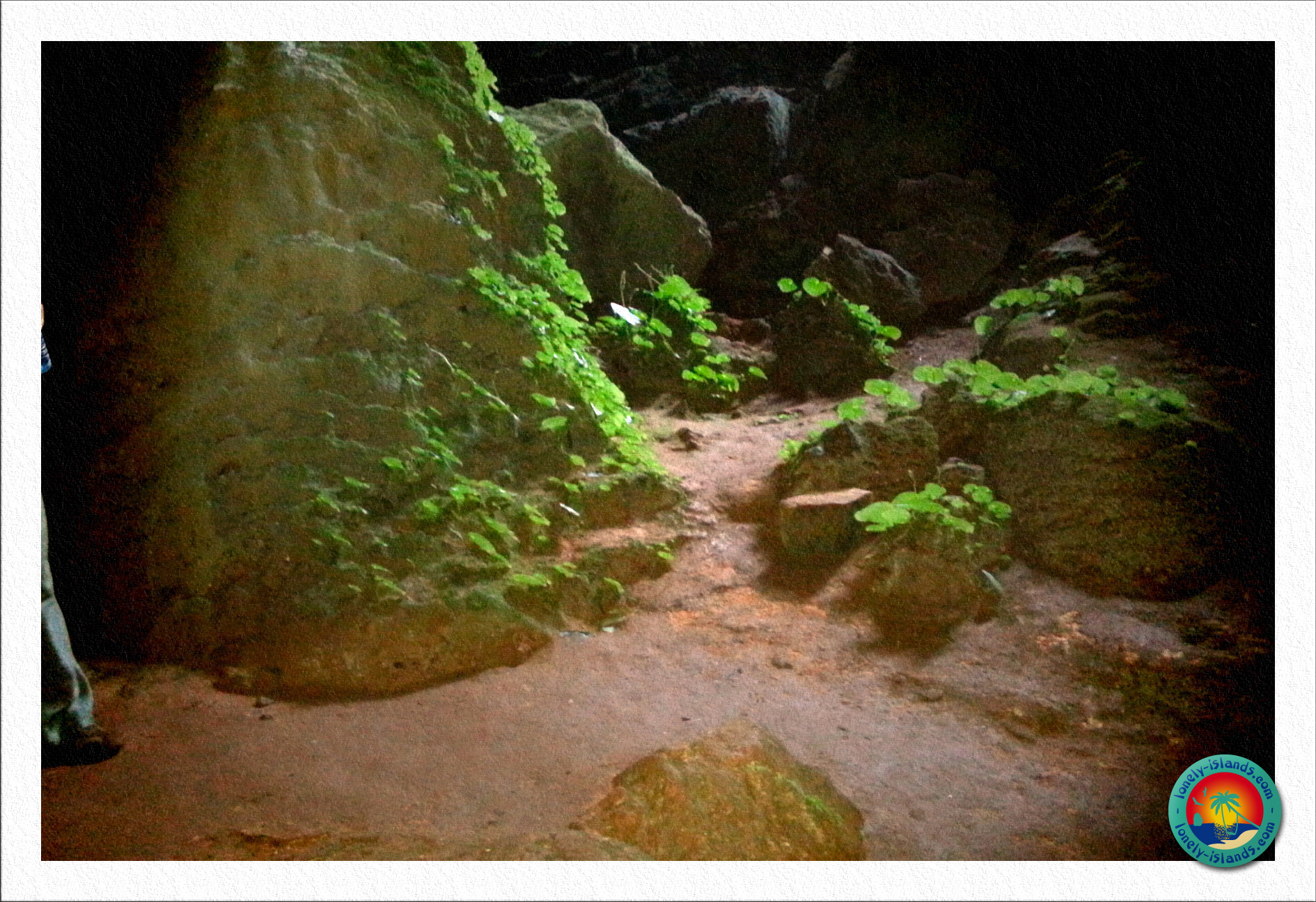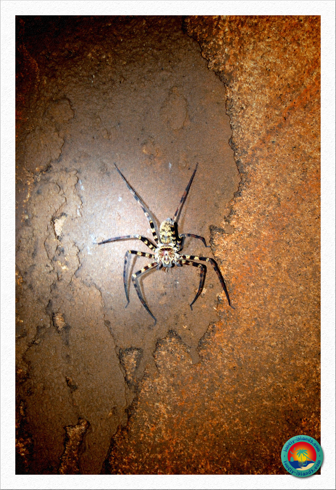 Nach ca. 2 Stunden erreichten wir den Eingang einer Höhle. Der Boden war sehr feucht und rutschig. Sie sah wirklich schön aus mit glänzenden und grünem Tropfstein. Zum Glück hatte unser Guide eine Taschenlampe mit. In der Höhle waren viele Schlangen auf Felsen und einige Riesenspinnen zu sehen. Der Boden war mit Insekten bedeckt, also nicht geeignet für jedermann. Im tiefsten Punkt der Höhle haben wir einen riesigen Fledermausschwarm aufgeschreckt. Sie flogen sehr nah über unseren Köpfen hinweg und mir wurde klar, was am Eingang der Höhle los sein muss, wenn alle Fledermäuse in der Dämmerung die Höhle verlassen. Wir kamen an einem anderen Ausgang aus, wo wir über schmalen Brettern über Wasser zu einem Steg gelangten, und unser Longtailboot auf uns wartete. Hier wurden wir endlich mit Flüssigkeit versorgt. Ich habe eine Cola noch nie so genossen wie hier.