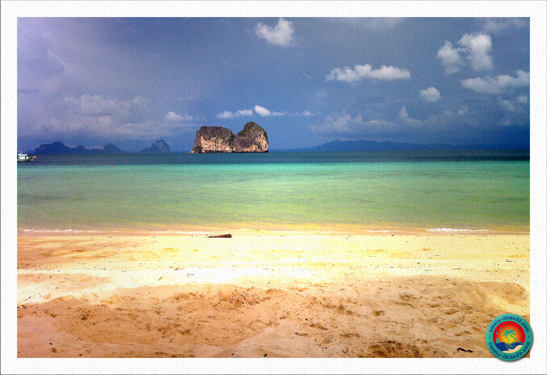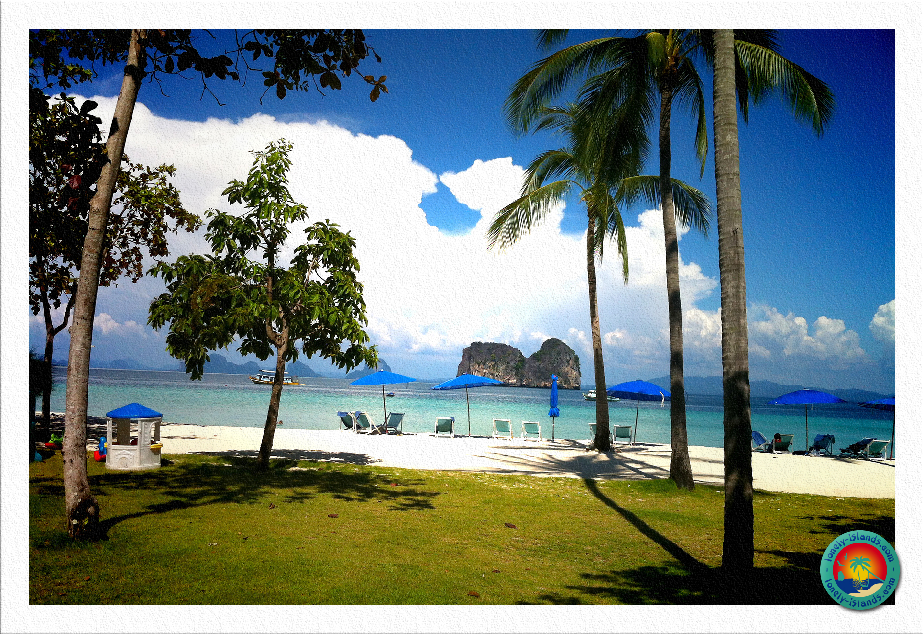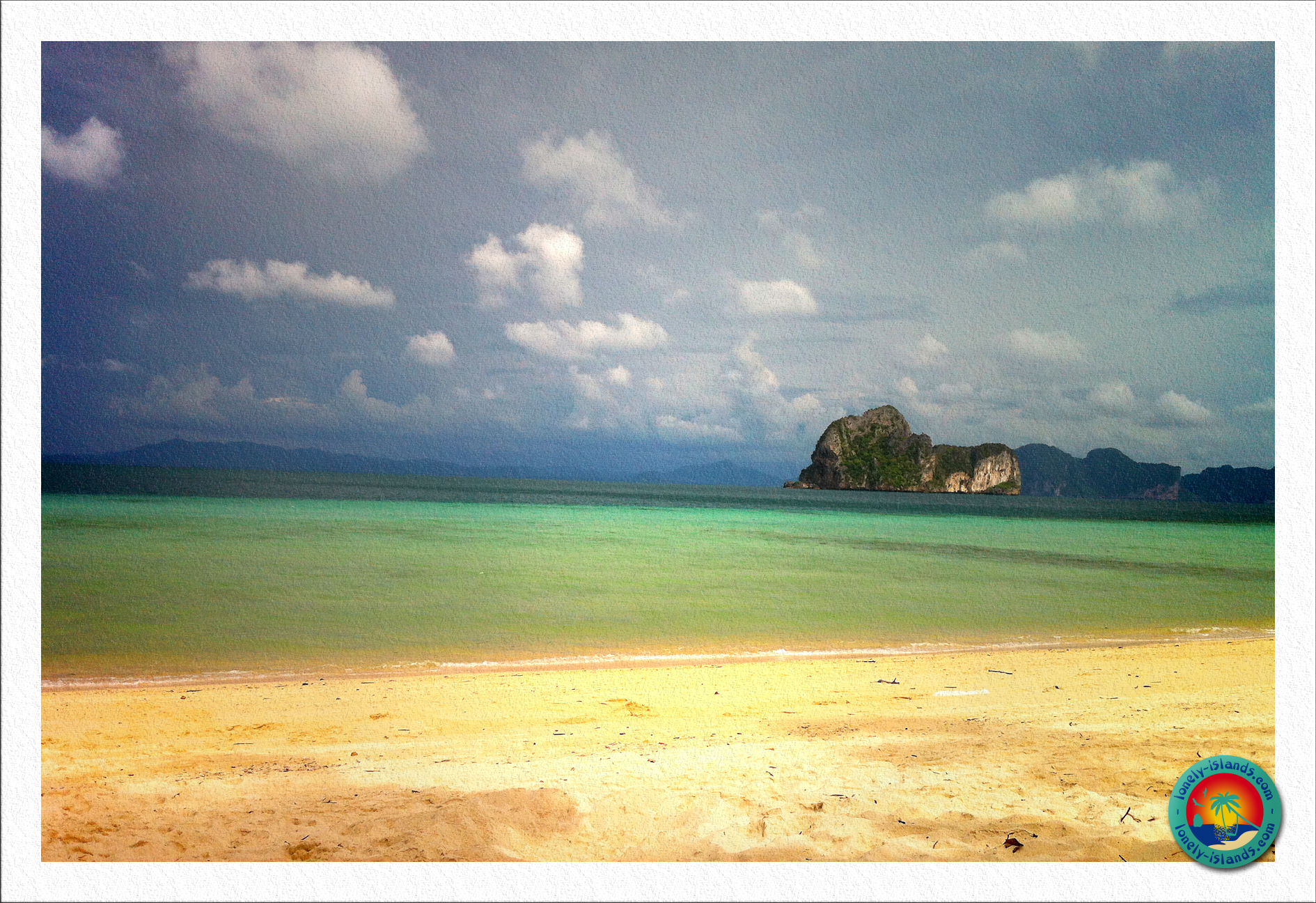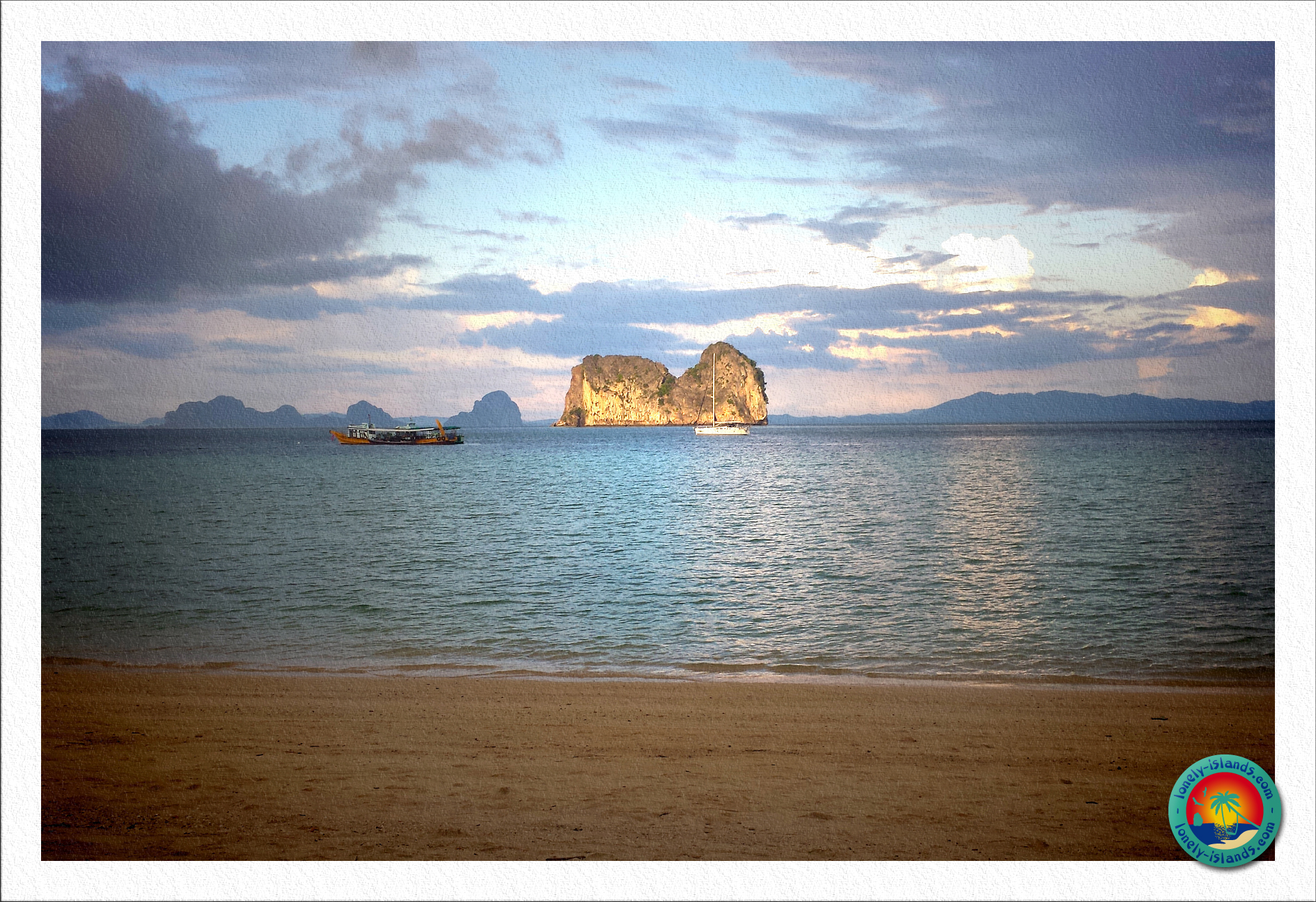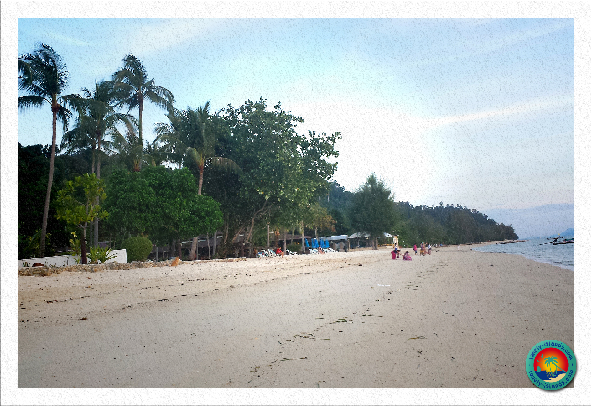 Als wir das erste Mal die Insel betraten, kam man sich direkt vor wie im Paradies. Die Wolken färbten sich violett-rot und der feine, weiße Sand war sehr angenehm unter den Füßen. Eine naturbelassene, tropische Insel, mit Kokospalmen, langen, weißen und fast menschenleeren Sandstrand, Regenwald und türkises Wasser, umgeben von Korallenriffen. Der Ausblick auf das Meer war traumhaft. Hier waren zahlreiche Karstinseln und besonders die Inseln Koh Maa, Koh Chuak und Koh Waen waren immer ein Blick wert. Auch nach 4 Tagen auf der Insel habe ich mich noch nicht sattgesehen an diesen tollen Ausblick. Wenn die Sonne die Felsinseln anscheint, sehen sie besonders schön aus.