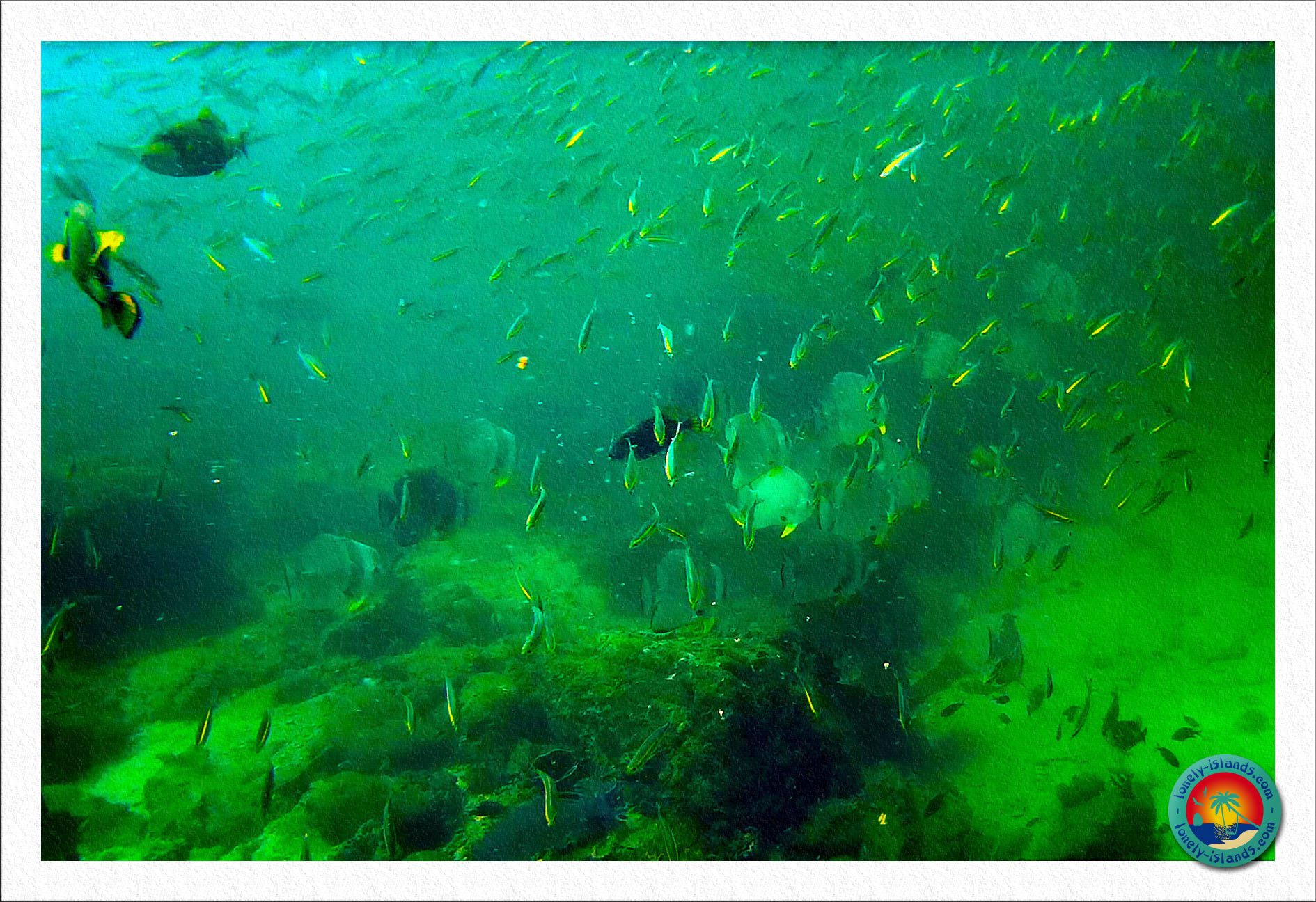 Riesenmakrelen, Riesenbarakudas und das erste Mal haben wir eine große Anzahl von Fledermausfischen gesehen.