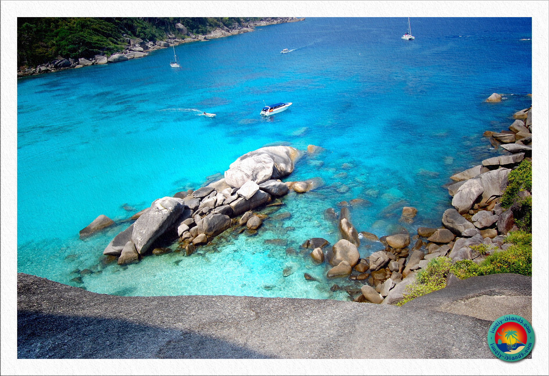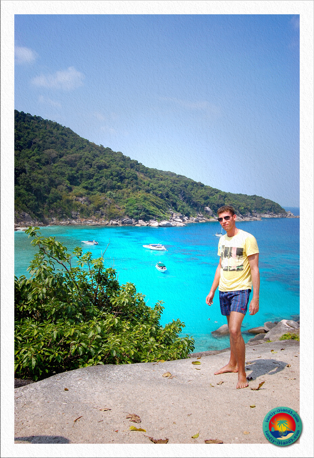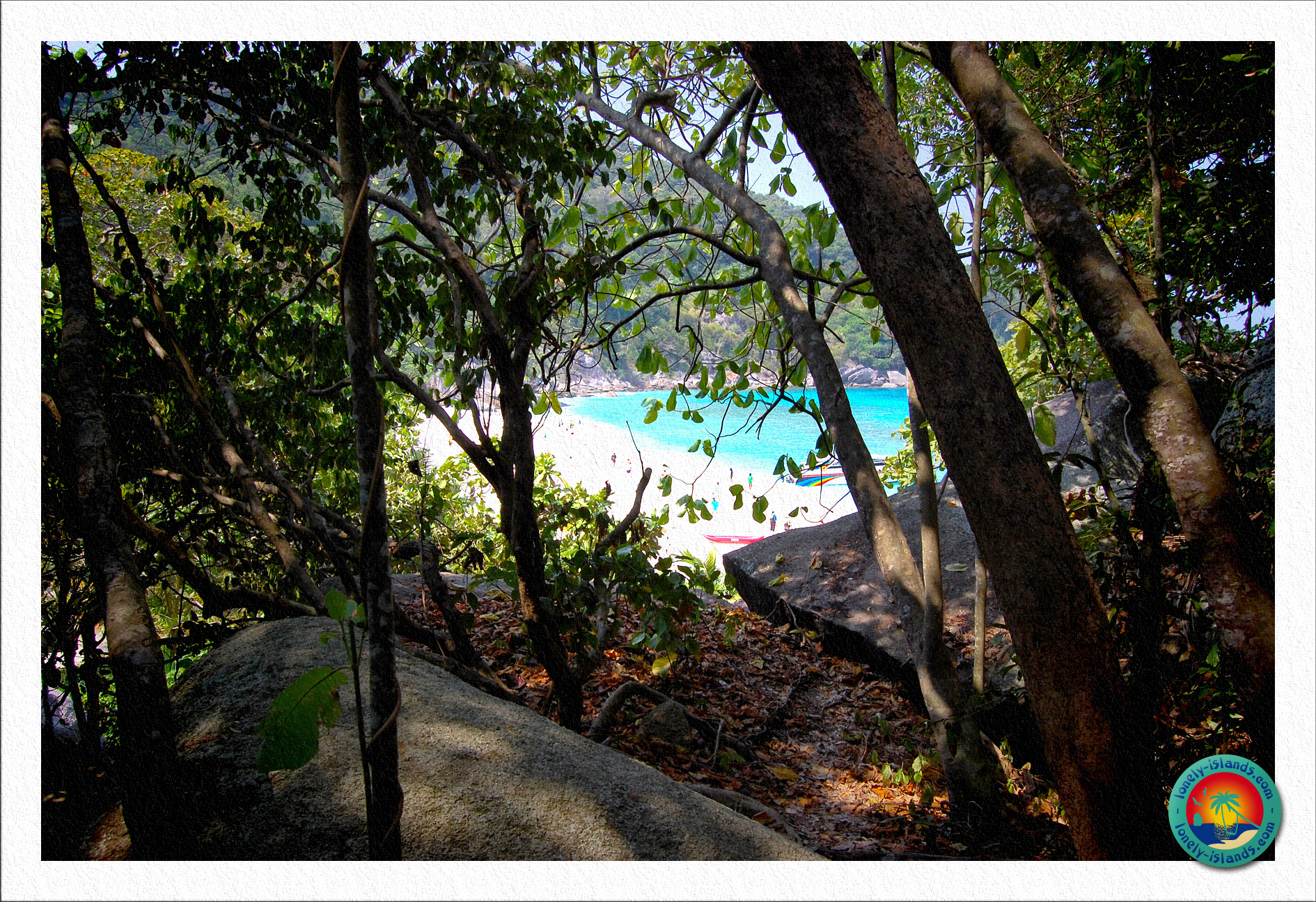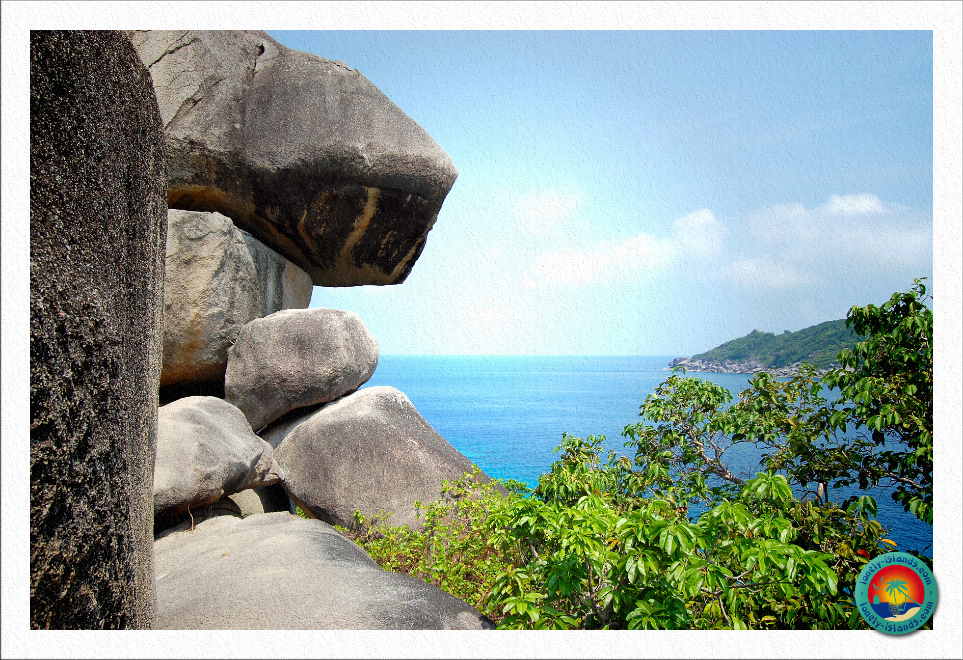 Nach ca. 30 min. Schnorchelzeit ging es dann zur ersten Insel. Es war die Insel, die man aus den Prospekten kennt. Die mit dem Entenkopffelsen oder Sailrock. Vor Ort sieht der Strand noch schöner aus. Total sauberer, feiner, weißer Sand und das Wasser leuchtete in schönen, unterschiedlichen Blautönen. Außerdem sind die Strände hier umgeben von Granitfelsen. So stelle ich mir das Paradies vor. Das einzige, das zu dem klischeehaften Paradies fehlt, sind Kokospalmen, von denen hier nur wenige zu sehen sind. Ansonsten kann es kaum schöner sein! Die Strände der Similan Islands erinnern aufgrund ihrer Granit-Felsen sehr an die Seychellen.