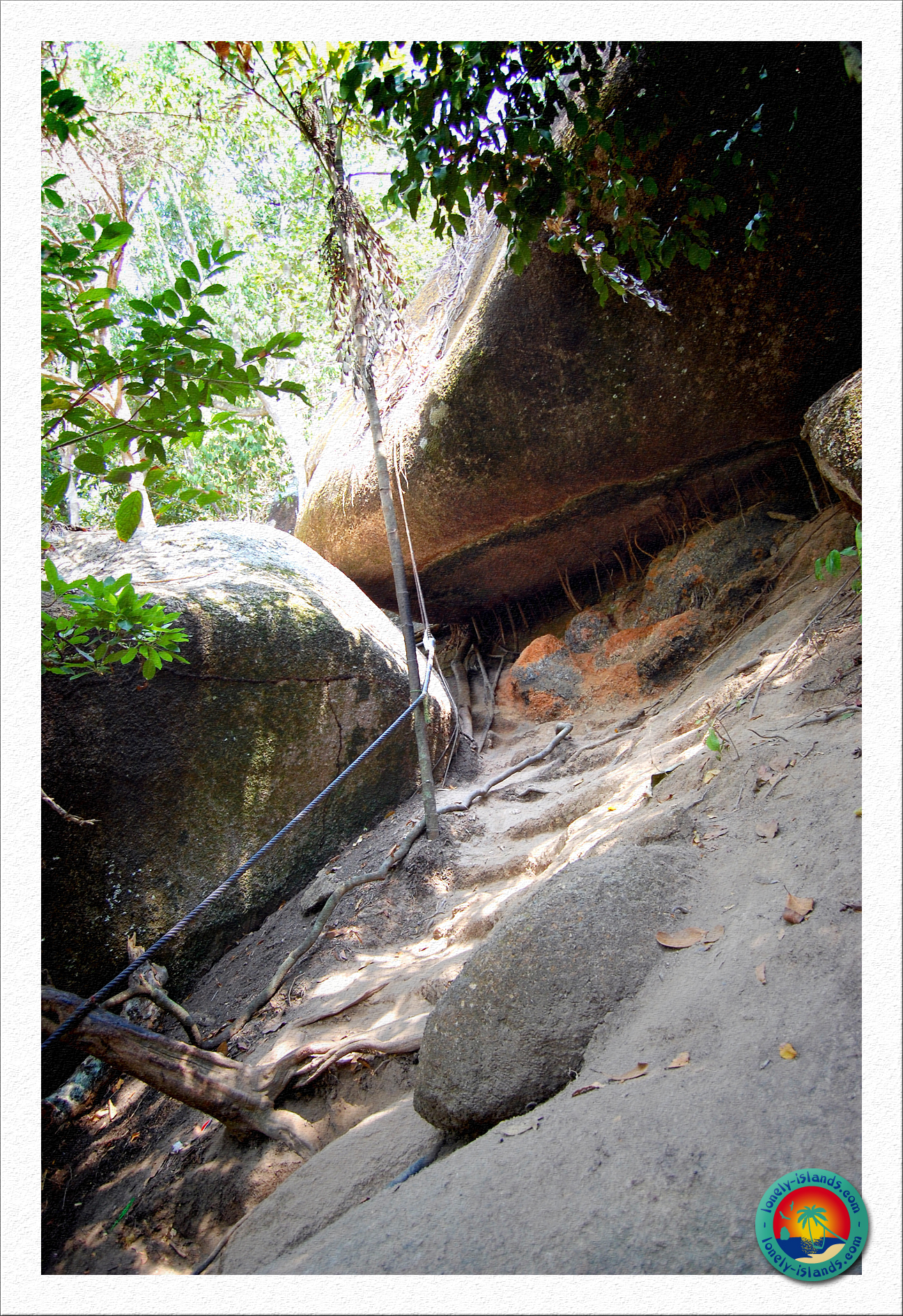 Nach ein wenig Relaxen am Strand und etwas Schwimmen in dem warmen Wasser zwischen den Felsen in wunderschönen Buchten war dann doch noch etwas Action angesagt. Um einen schönen Ausblick vom Sailrock genießen zu können, muss man hier ein wenig klettern. Um hoch zu kommen wurden hier viele Seile und Holztreppen angebracht. Allerdings wird hier in Thailand allgemein auf viele Sicherheiten verzichtet. Dadurch wirkt es abenteuerlicher ;-). In Deutschland wäre alles mit Geländer gesichert und jeder Stufentritt müsste gleich sein. Der Pfad ist sehr schmal und gegen Mittag sehr gut besucht. Dadurch kann es schon mal eng werden. Aber es lohnt sich. Von oben am Sailrock hat man einen traumhaften Ausblick auf den Strand und das Meer.