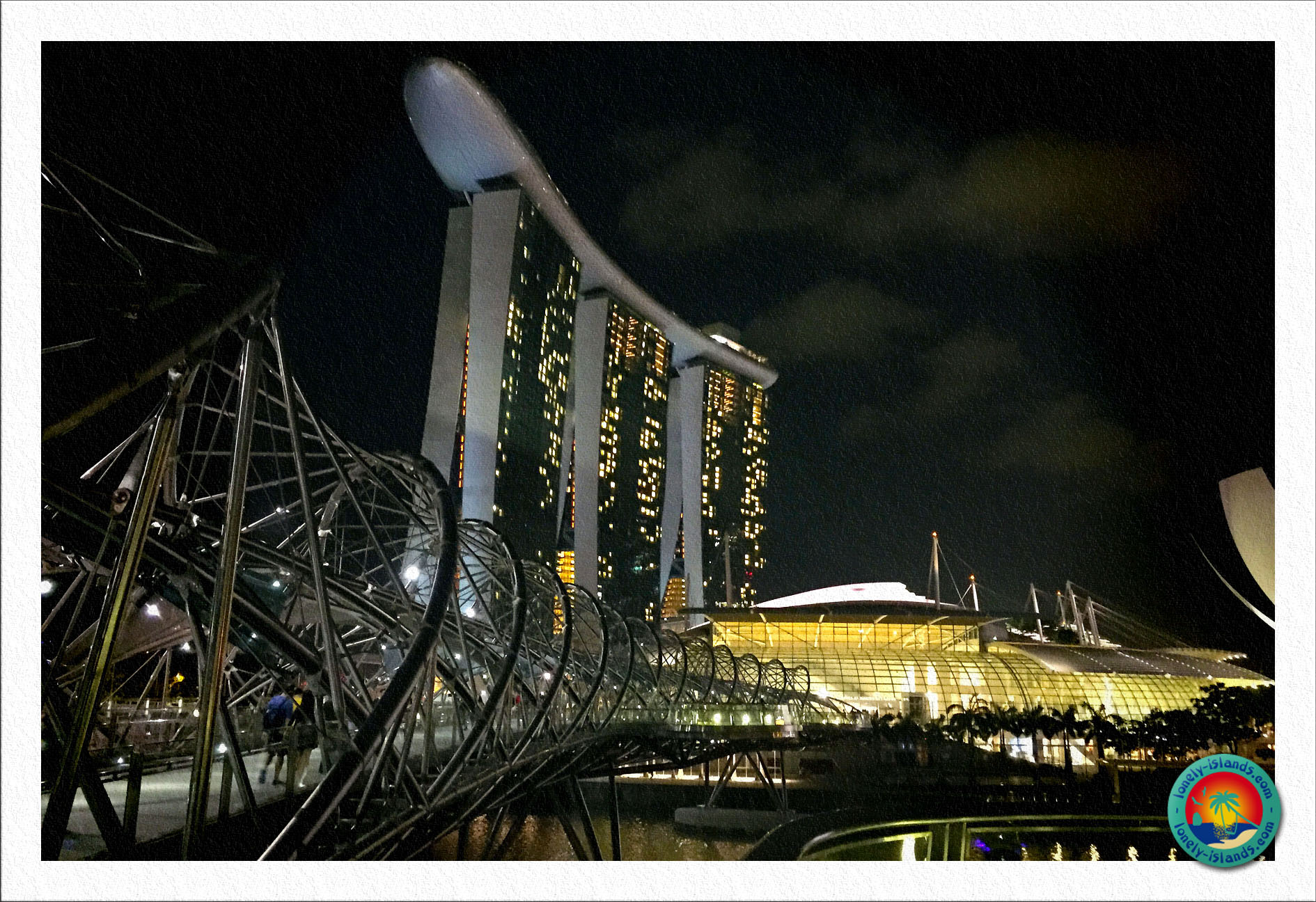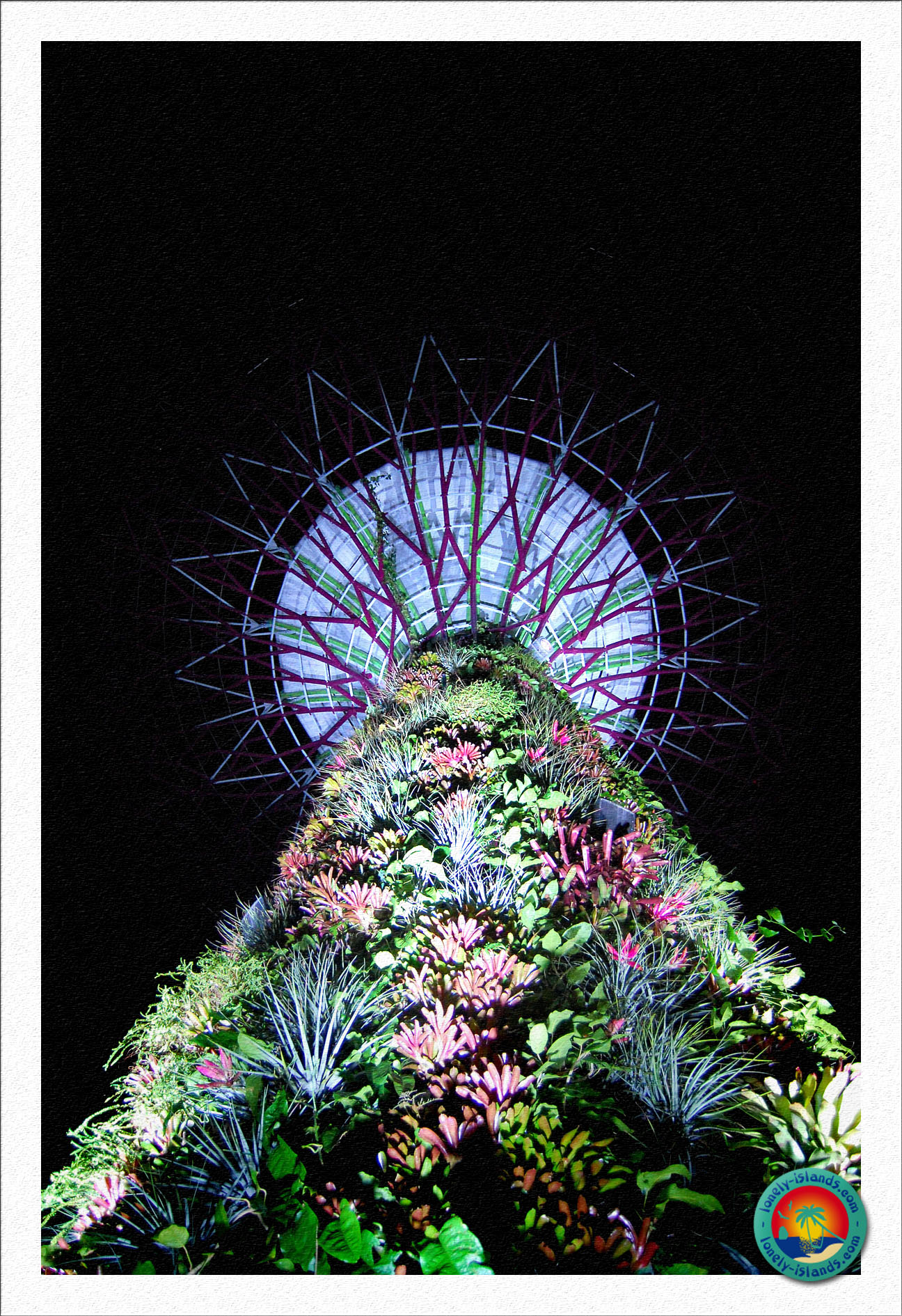 Wir gingen über die Helixbridge und durch die Shoppingmall des Marina Bay Sands und kamen endlich auf der anderen Seite der 3 Türme mit dem riesigen Schiffsdach an. Es war bereits sehr dunkel und wir fanden ein Schild, auf dem die Zeiten der Lichtshows abgebildet waren. In 20 min sollte es los gehen, aber nichts passierte. Wir warteten eine weitere halbe Stunde und wollten bereits umkehren. Zum Glück haben wir uns vorher noch bei Angestellten erkundigt. In 10 Minuten sollte es los gehen hieß es und dann ging die Lichtshow endlich los. Diese riesigen, künstlichen Bäume sind total mit Pflanzen bedeckt, die im Licht traumhaft aussehen. Man kam sich vor wie auf Pandorra in Avatar. Einfach atemberaubend dieser Anblick. Wir waren sehr glücklich nicht einfach gegangen zu sein, denn dieses Schauspiel hätte ich nur sehr ungerne verpasst! Einige der Bäume sind per Lauftsteg miteinander verbunden und in den größten gibt es sogar Restaurants. Außer dieser Lichtshow gibt es in den Gardens by the Bay auch noch 2 riesige Gewächshäuser, in denen Pflanzen aus allen Teilen der Welt wachsen. Wir kennen nur Gewächshäuser, in denen mehr Licht und Wärme benötigt wird, hier in den Tropen ist es genau umgekehrt. Die Temperatur in den Gewächshäusern wird herabgesetzt und die Sonneneinstrahlung wird gefiltert.
