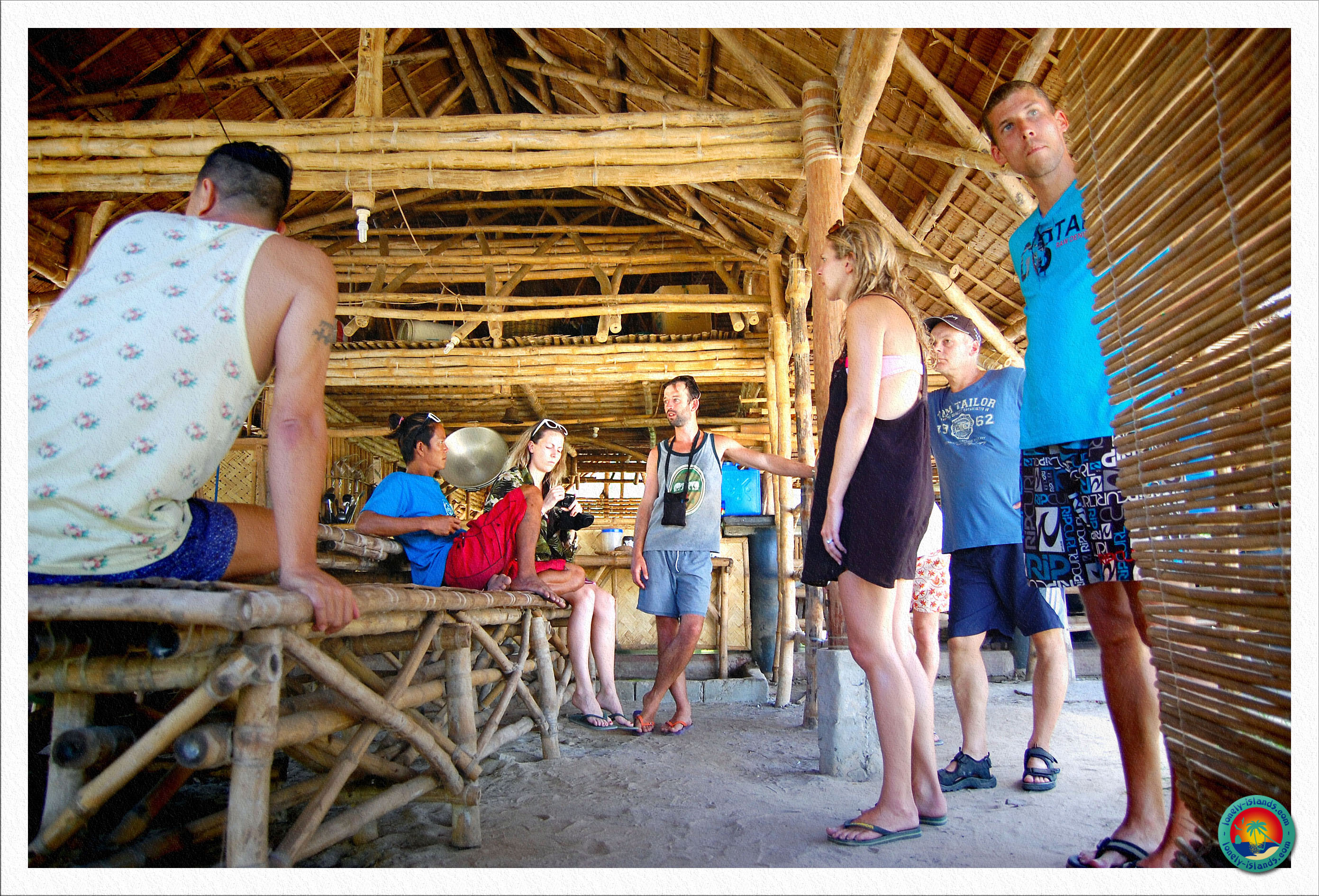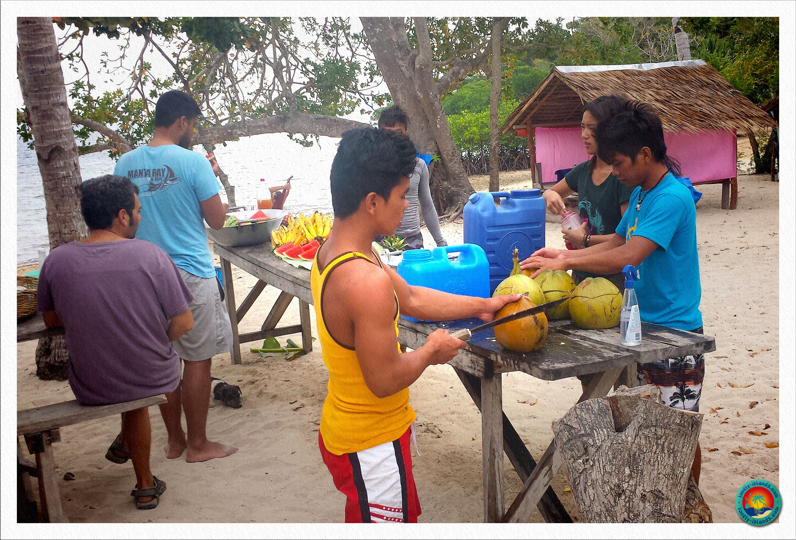 So haben ich und Michael an einem Riff Riffhaie, Stachelrochen und Sepien gesehen und ein paar andere der Tao-Gruppe hatten sogar das Glück auf eine Gruppe Adlerrochen zu treffen. Alles in allem ein unvergesslicher Tag mit dem klarsten Wasser, das man sich nur vorstellen kann, einer atemberaubenden Unterwasserwelt, Traumstränden und sehr gutem Essen. Unser nächstes Basecamp war auf Guinto Island, einer kleinen, naturbelassenen Insel. Hier haben wir den Filipinos erstmal gezeigt, wie man Dunkings macht. 😀