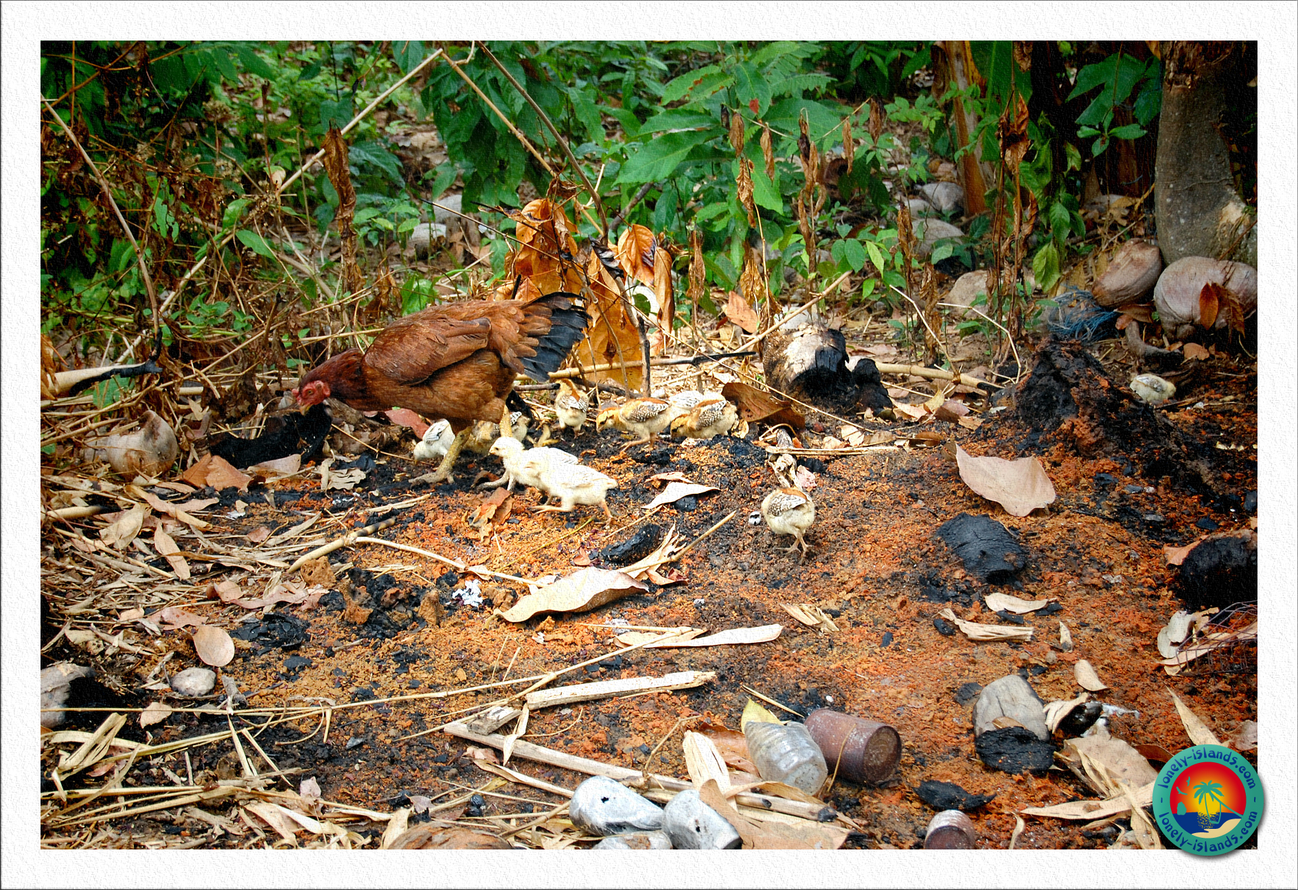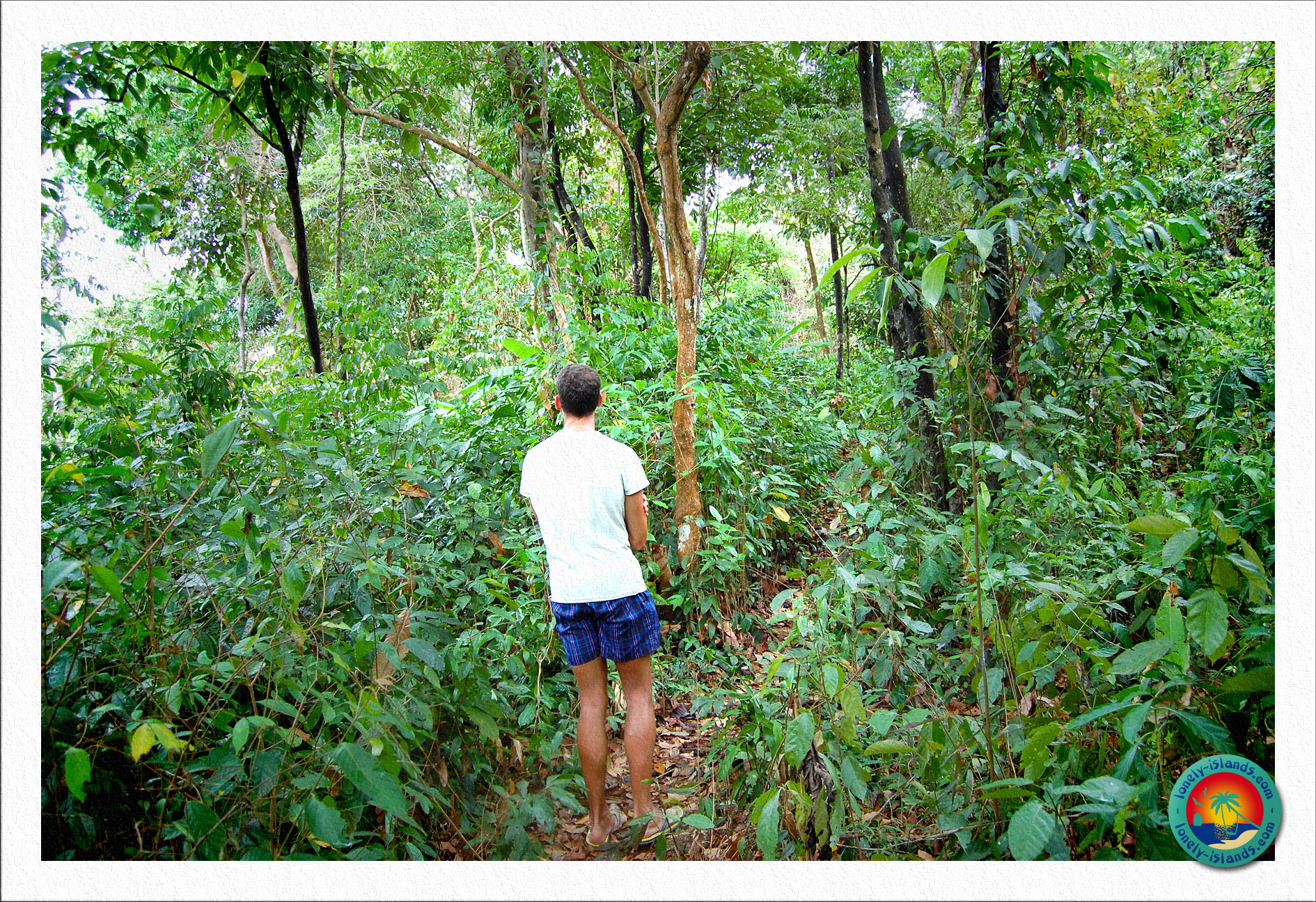 Nachdem wir den Anblick genug genossen hatten, wollten wir die Insel noch etwas abseits der Touristenwege erkunden. Wir fanden von hier aus einige schöne Waldpfade, die zu einheimischen Häuschen führten. Aufgrund der Abgeschiedenheit und einiger Filme erwartet man, dass man so nah an den “Grundstücken” nicht unbedingt willkommen sei, aber jeder Thailänder, dem wir auf den Wegen begegnet sind, hat uns sehr freundlich gegrüßt. In den abgelegenen Bereichen fanden wir einige Mangobäume, Bananensträucher und Kokospalmen die von den Einheimischen hier angebaut werden. Außerdem laufen hier viele Hühner herum. Einige abgerodete Flächen waren hier auch zu finden. Dann fanden wir noch einen vierten Viewpoint, der allerdings noch nicht fertig war. Von hier hatte man auch einen tollen Blick auf umliegende kleine Inseln.
