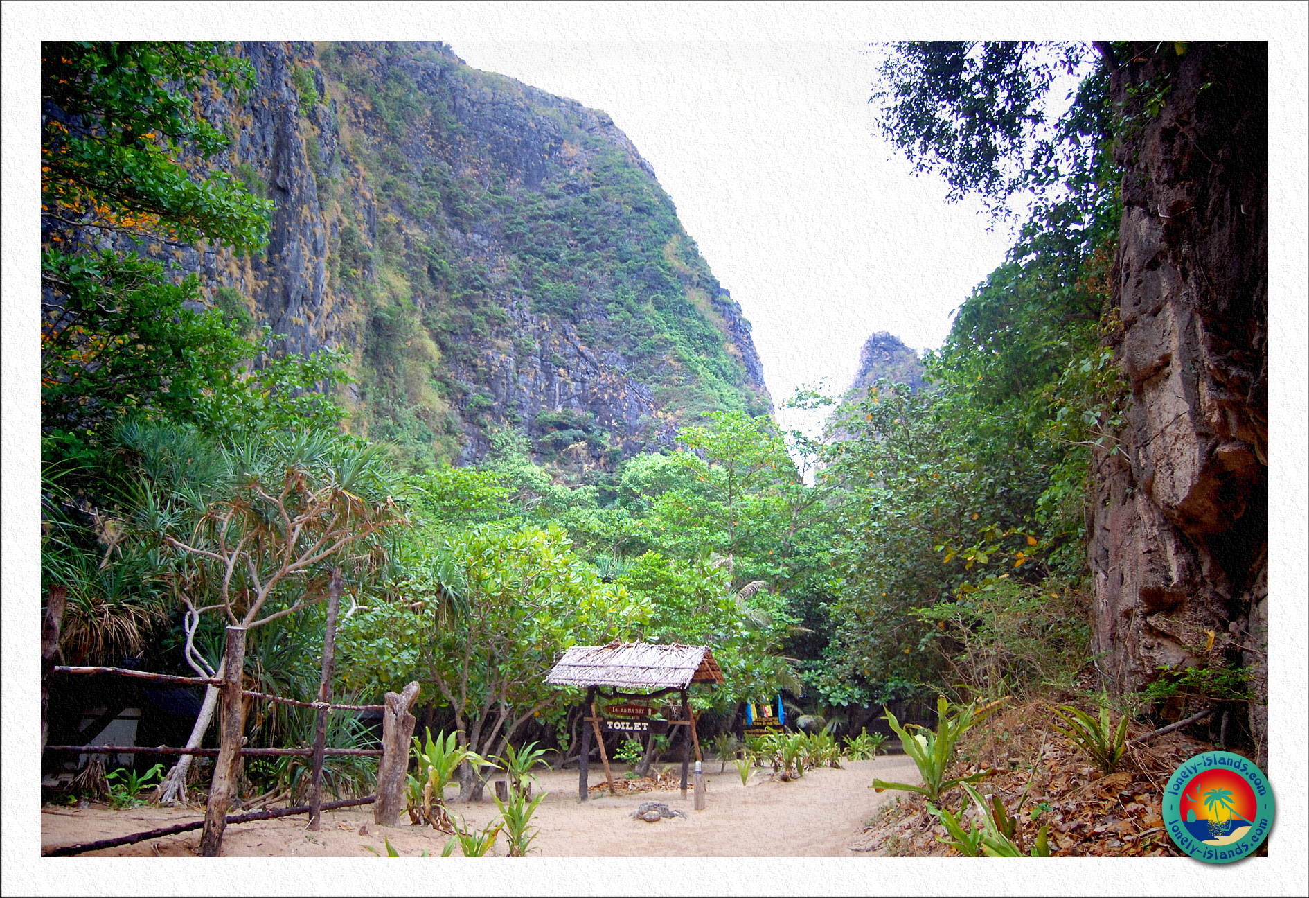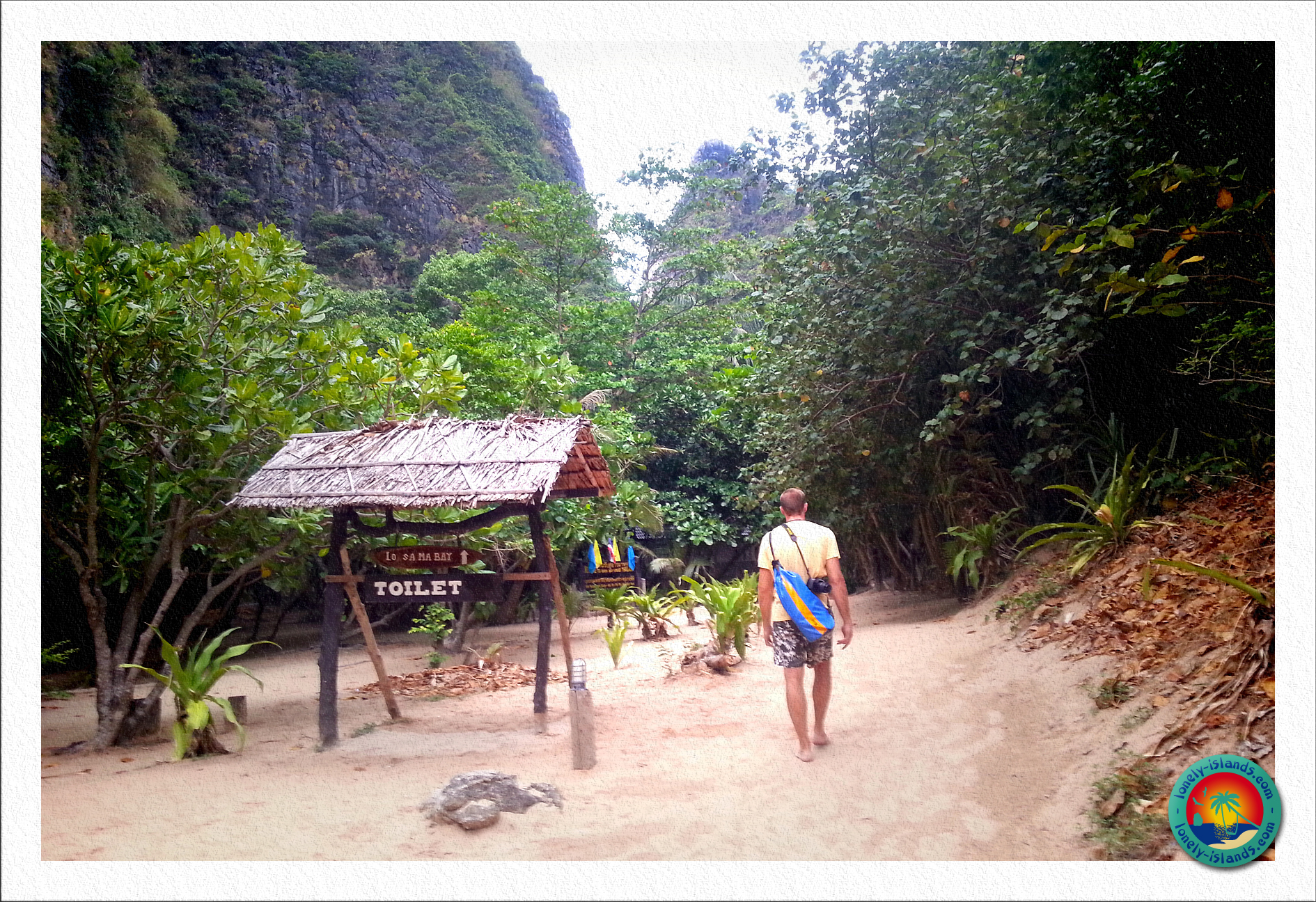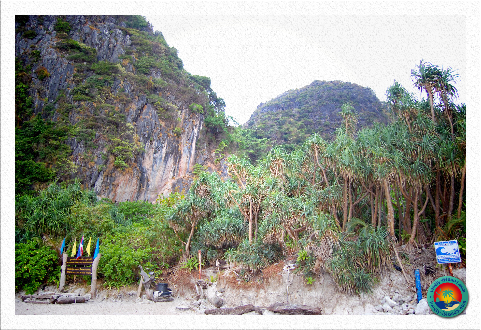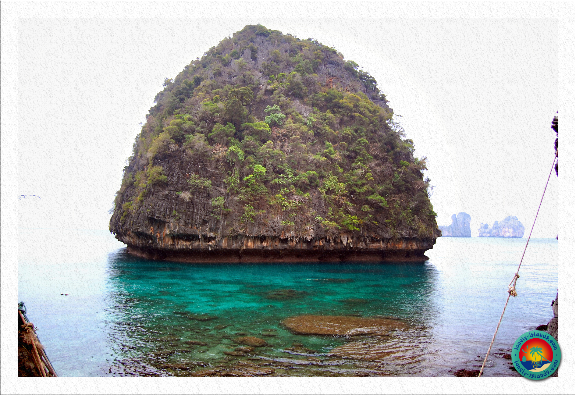 Natürlich wird hier auch erstmal eine kleine Nationalparkgebühr von 200 Baht eingefordert ;-). Auf der Insel ist ein kleiner Zeltplatz zu finden, wo meines Wissens nach aber heute keine Übernachtungen mehr stattfinden. Ein Highlight ist aber noch eine Bucht auf der anderen Seite, in der man Blick auf einen runden, pilzförmigen, bewachsenen Kalksteinfelsen hat, der mit leuchtend türkisem Wasser umgeben war.